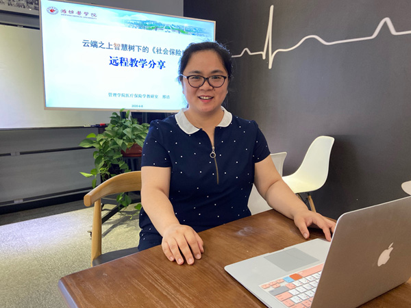 伴随潍坊医学院教师发展培训月各项活动的开展,6月8日下午2点,国产精品高潮呻吟医疗保险学教研室邢洁老师于E区智慧树课栈进行了“云端之上智慧树下的社会保险学”远程教学设计案例分享培训。教务处孙嘉斌处长、部分院系教学分管领导、教研办主任和老师们进入“潍坊医学院教发培训”课程,进行了交流。