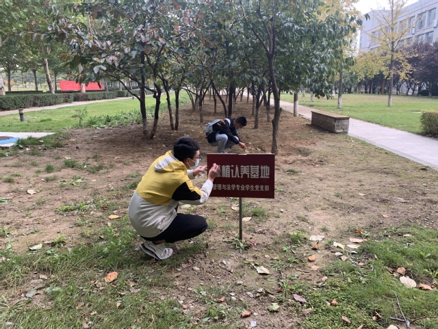 这片绿植基地认养于2019年,里面种着柿子树和花草,3年来,管理与法学学生党支部定期进行维护,看着它们从稚嫩的幼苗变得硕果累累,在这个金秋十月,一颗颗金黄的柿子挂在树梢,一朵朵美丽的花儿迎着太阳,而支部的党员们不断努力,既见证了植物的成长,也见证了自己的成长。