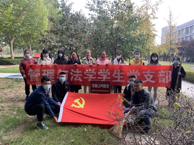 10月21日上午,管理与法学学生党支部开展“弘扬劳动精神,筑梦美丽校园”主题党日活动,对支部认养的绿植基地进行养护和清理。党员、预备党员和积极分子代表参加活动。