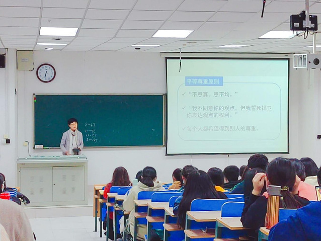 讲座邀请到心理学院刘晓丽老师作为主讲人。刘晓丽老师围绕“平等尊重、诚信、互利互惠、人际交往、界限、宽容谦让”六大原则进行阐述,并重点讲解了同学们疑问最多的“界限原则”,她指出:我们是热情和与人为善的文化,但我们这个文化中往往界限不明,人与人之间如果界限不清,就潜藏着冲突。刘晓丽老师通过两个短片向同学们展示了影响人际吸引的因素,并以弹幕互动的方式与同学们畅谈自己的交往准则。弹幕中,同学们大多选择与更加真诚的人做朋友,这也与讲座初所讲的“巴菲特买进”问题相吻合。最后,老师以幽默风趣的口吻解答同学们的难题,教会同学们拒绝的重要性,猜忌的不必要性,教导同学们直白表达自己的情绪。