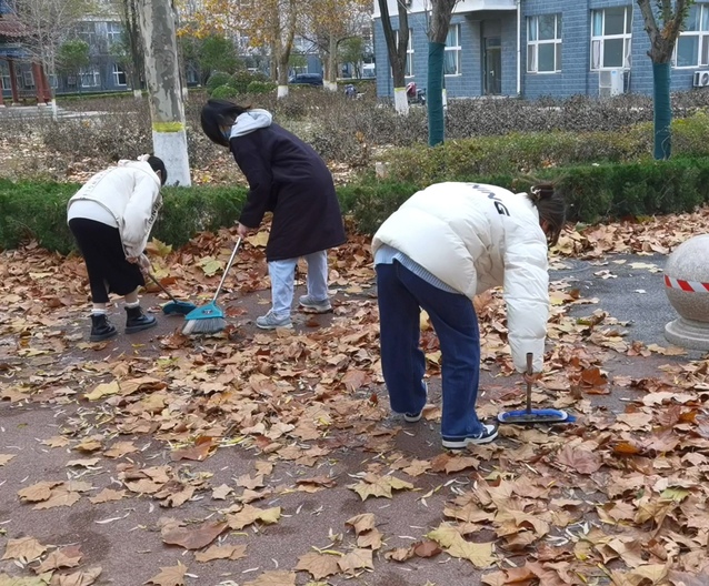 一、社会实践篇——争做最美劳动者。支部成员沿着校园道路设计规划的两个“L”路线(构成“廉”字的首字母)进行扫落叶接力赛,大家积极主动拿起扫帚等劳动工具扫落叶,场面热火朝天,为校园物业工作人员减轻负担的同时,也美化了校园环境,以实际行动践行了“我为群众办实事”。