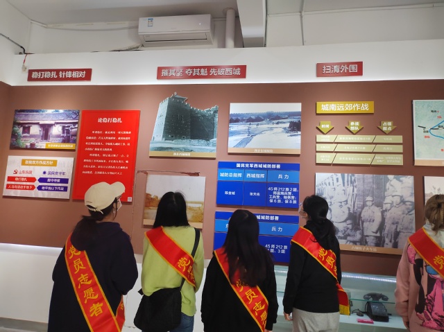 在潍城区十笏园街区的潍县战役纪念馆,大家观看了相关专题片,从一件件陈旧的展品、一张张真实的图片和一段段感人的文字中了解到当年的历史,重温了潍县战役那段战火硝烟的岁月,深刻感受到革命先辈不怕牺牲的大无畏革命精神,接受了一次现场党性教育。大家纷纷表示,要深入开展学习贯彻习近平新时代中国特色社会主义思想主题教育,弘扬潍县战役精神,传承红色基因,为奋力创建高水平医科大学争先锋、作表率,为中华民族伟大复兴添砖加瓦、增光添彩。