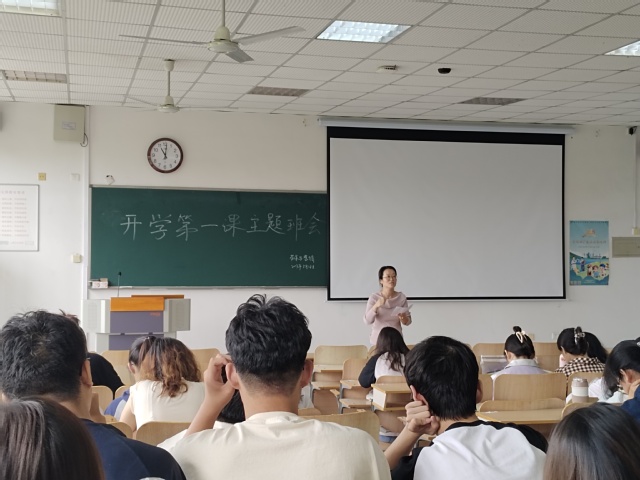 此次班会主要涉及新学期身份转换、心理健康要重视、财产安全防诈骗、网络舆情需慎言、未来职业要规划等五个方面的内容。