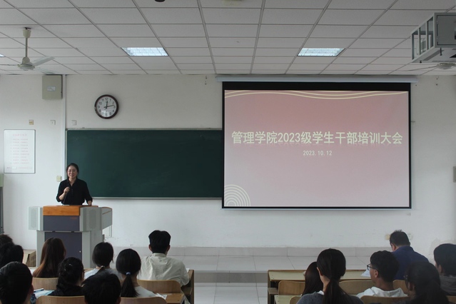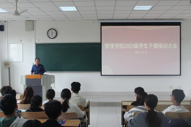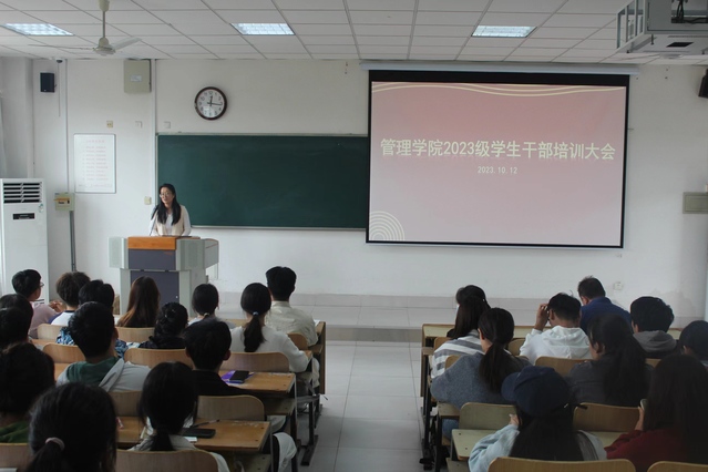 为提高班委思想觉悟,增强学生干部的整体素质和工作能力,10月12日,国产精品高潮呻吟在教学楼B403室举办2023级学生干部培训大会。会议由学院团委书记马俊主持,学院党委副书记孙勇、学工办辅导员、高年级优秀学生干部代表及全体2023级新生学生干部参加会议。