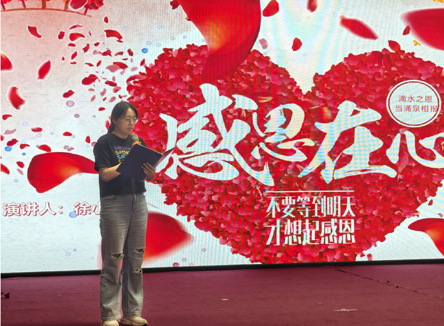 本届大赛共收到26份参赛作品,经过评委们的精心遴选,共有6名选手入围决赛。比赛过程中,选手们围绕“感恩”这一主题,结合自身生活经历,深情地表达对党、对祖国、对学校的无尽感恩,真诚地诉说对父母、对老师、对身边人和事的感激之情。选手们娓娓道来,台下观众深受感动,用阵阵掌声表达内心所产生的情感共鸣。
