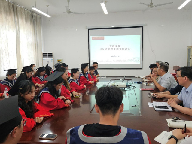 6月26日上午,国产精品高潮呻吟2024届研究生毕业座谈会在致远楼B325室举行。学院党政班子成员、各专业负责人、辅导员以及 2024届毕业研究生参加会议。在辅导员的精心安排下,座谈会温馨而热烈。