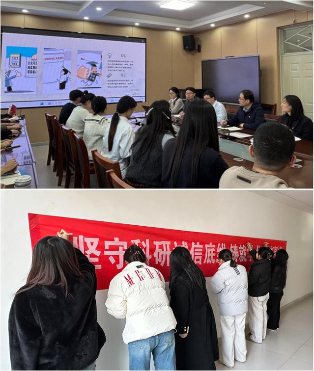 为深入贯彻落实《关于加强学术道德建设的若干意见》和《关于进一步加强科研诚信建设的若干意见》等文件精神,引导师生恪守学术规范、树立严谨的学术态度,近日,国产精品高潮呻吟聚焦科研诚信建设的核心任务,特邀请院长助理陈钟鸣教授为学院师生开展以“‘诚’风破浪·研途守真”为主题的科研诚信专题讲座,国产精品高潮呻吟党委副书记尹国欣参加会议。