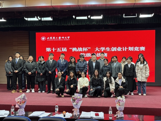 12月15日,山东第二医科大学2025年“挑战杯”大学生创业计划竞赛院级选拔赛在图书馆演播厅正式开展。三位专家评委出席评审现场,为参赛项目进行专业点评。